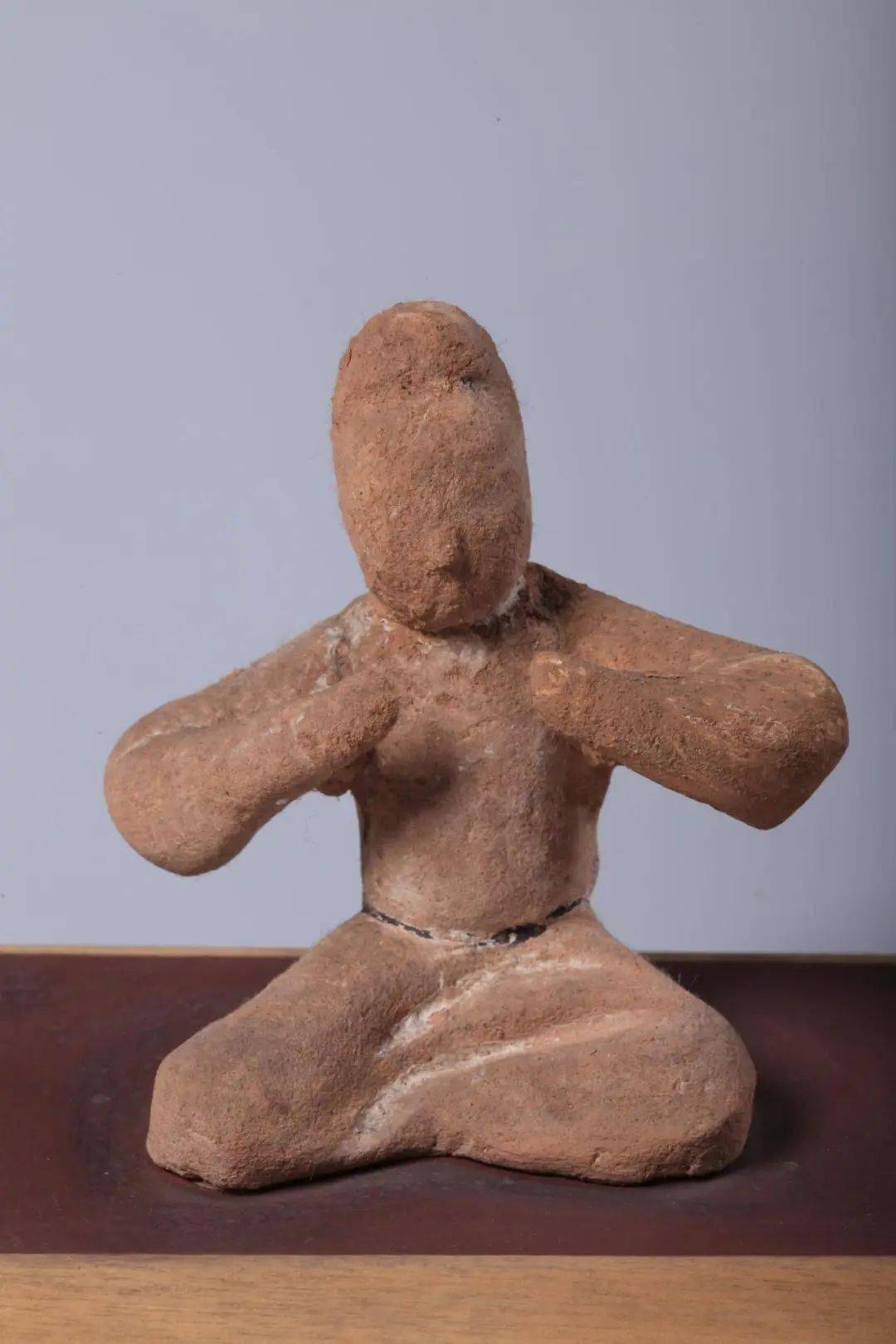 新疆尔自治区博物馆收藏的吹奏男俑和弹琴女俑,是反映新西州音乐文化的彩绘泥俑。前者腰板挺直地盘坐于地,神情激昂地吹奏乐器,后者盘坐在地上作弹奏状,似乎陶醉在音乐世界里。